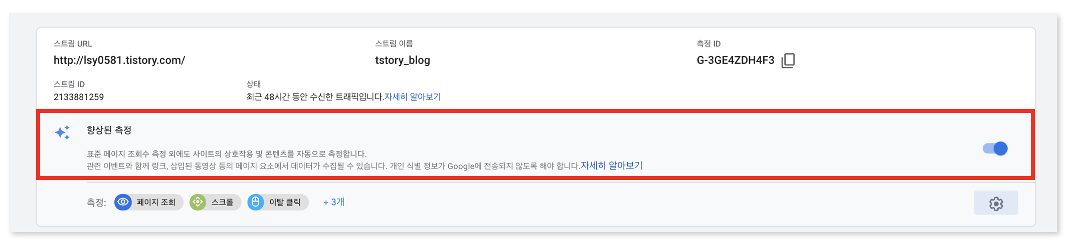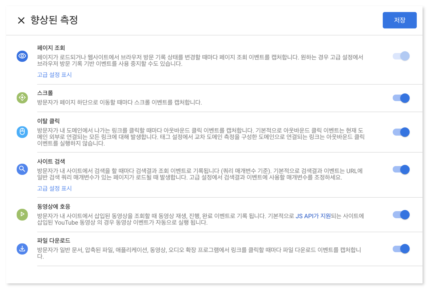 향상된 측정을 확인하면 됩니다. 이벤트를 측정하기 위해서 향상된 측정을 활성화활성화하셔야합니다.