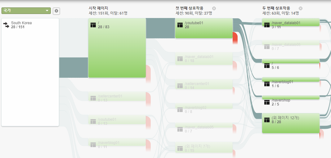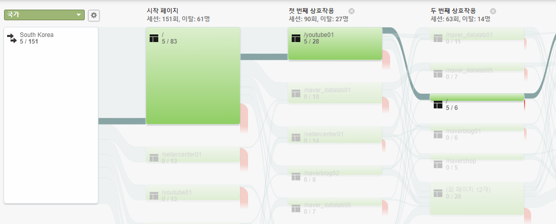 이처럼 사용자 흐름 보고서를 통해 사용자의 행동 패턴을 분석하여