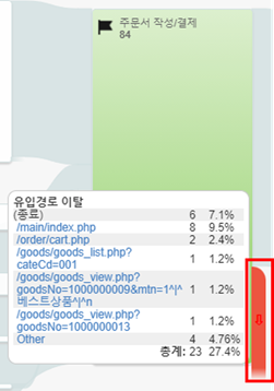 노드 우측 붉은 부분에 마우스 오버 시 어떤 페이지로 이탈되었는지 확인하실 수 있습니다.