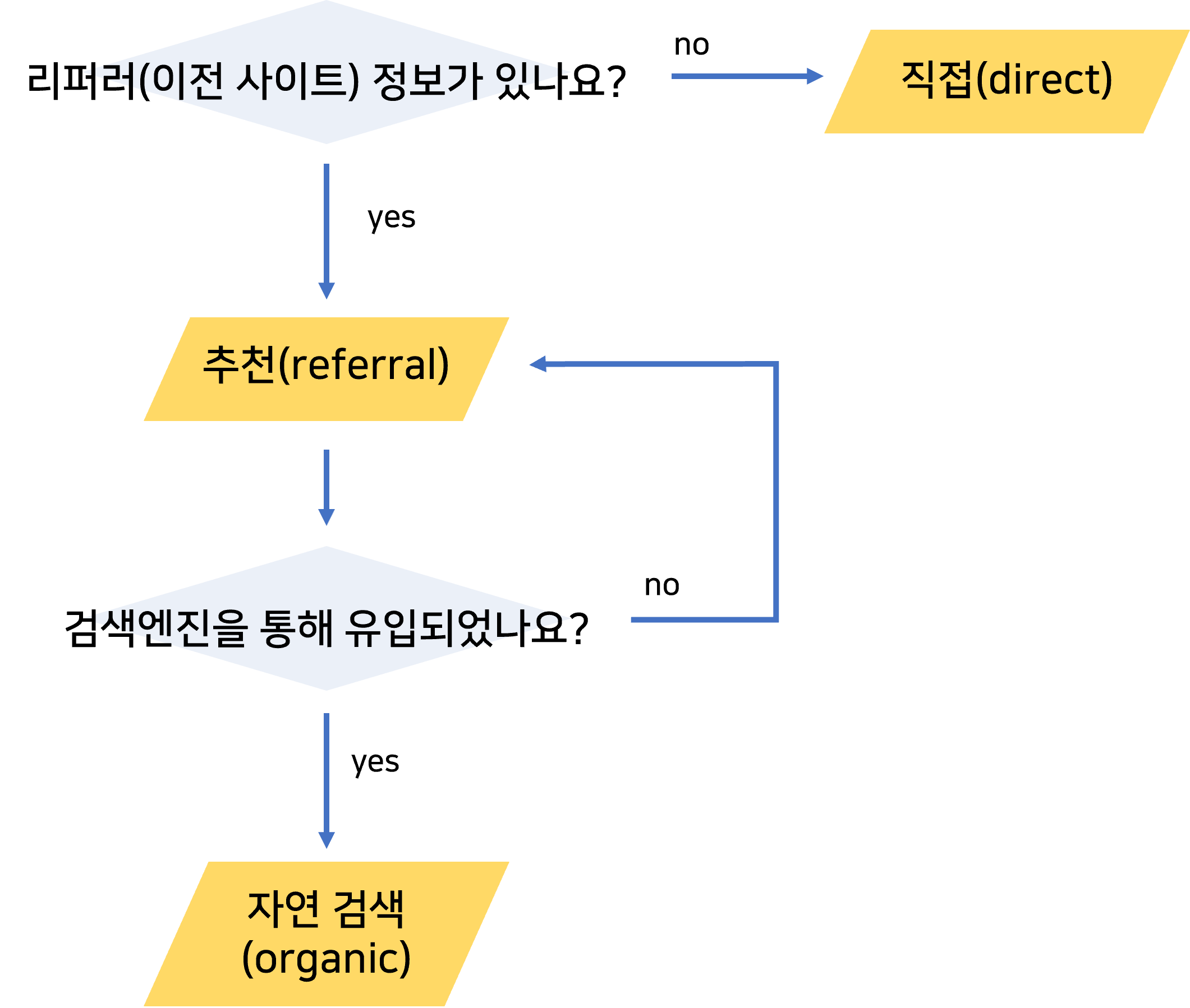 이렇게 분류된 referral 중 검색엔진을 통한 유입이 organic으로 재분류 됩니다.