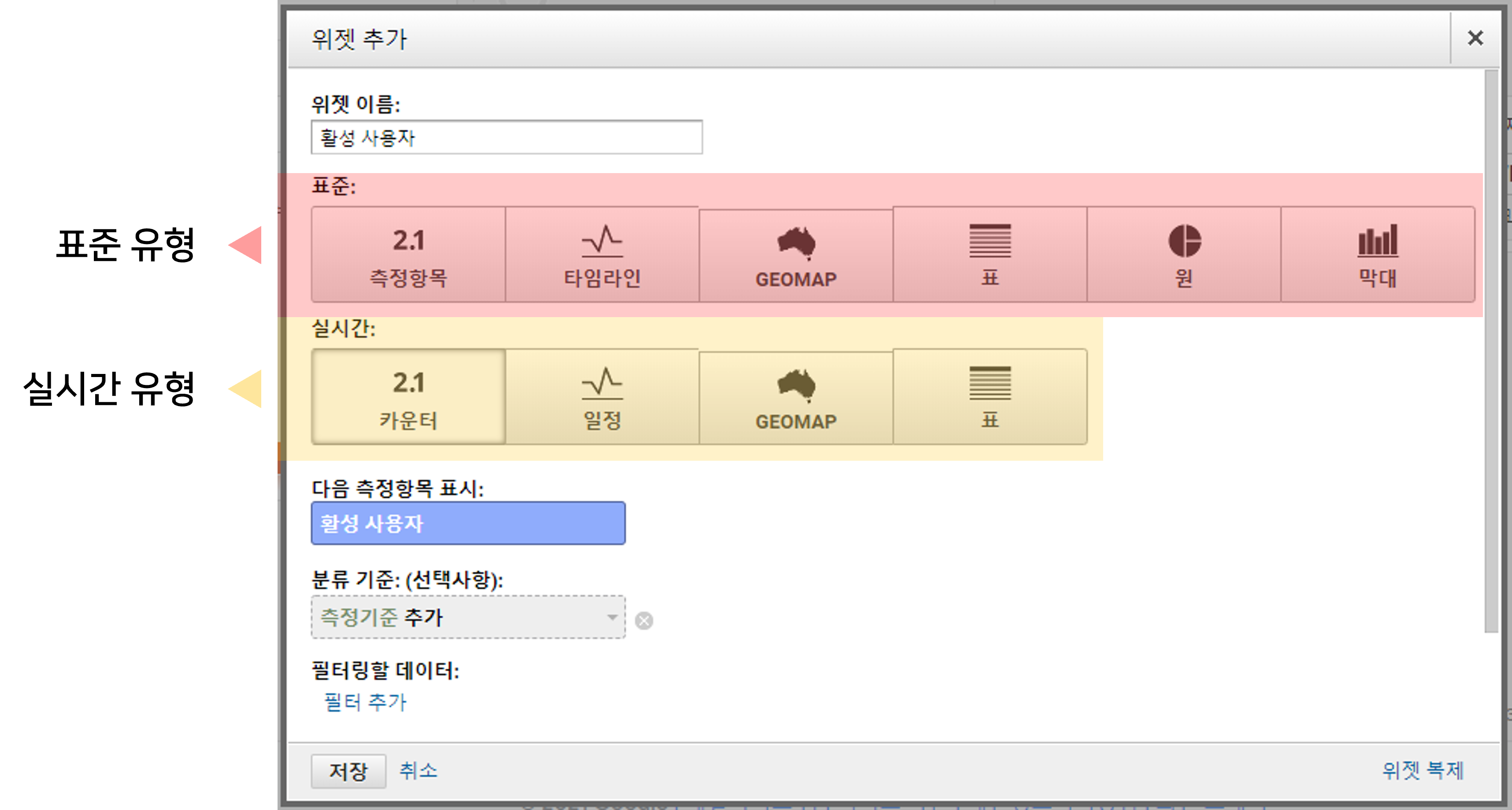 구글애널리틱스 대시보드(Dash Board) 위젯 설정하기