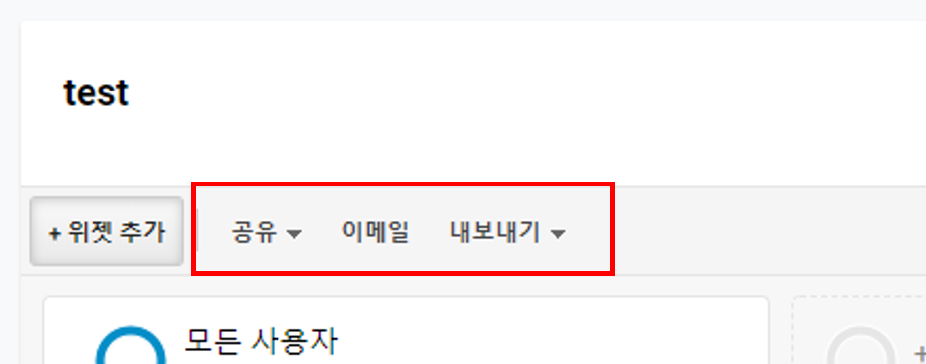 구글애널리틱스의 대시보드 상단에 공유/이메일/내보내기 기능을 이용하면