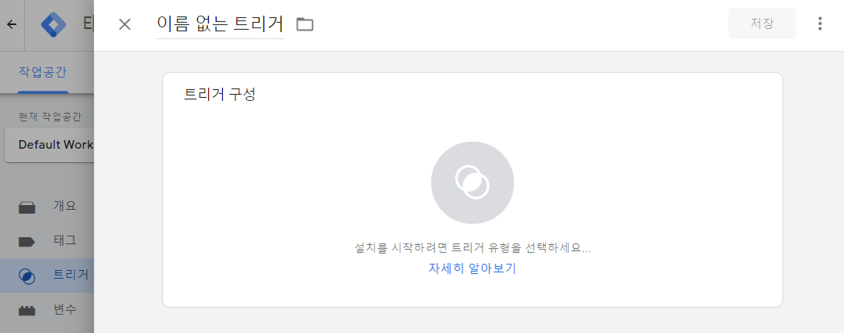구글 태그 매니저의 계정 설정이 완료되면 계정의 작업공간이 만들어집니다.