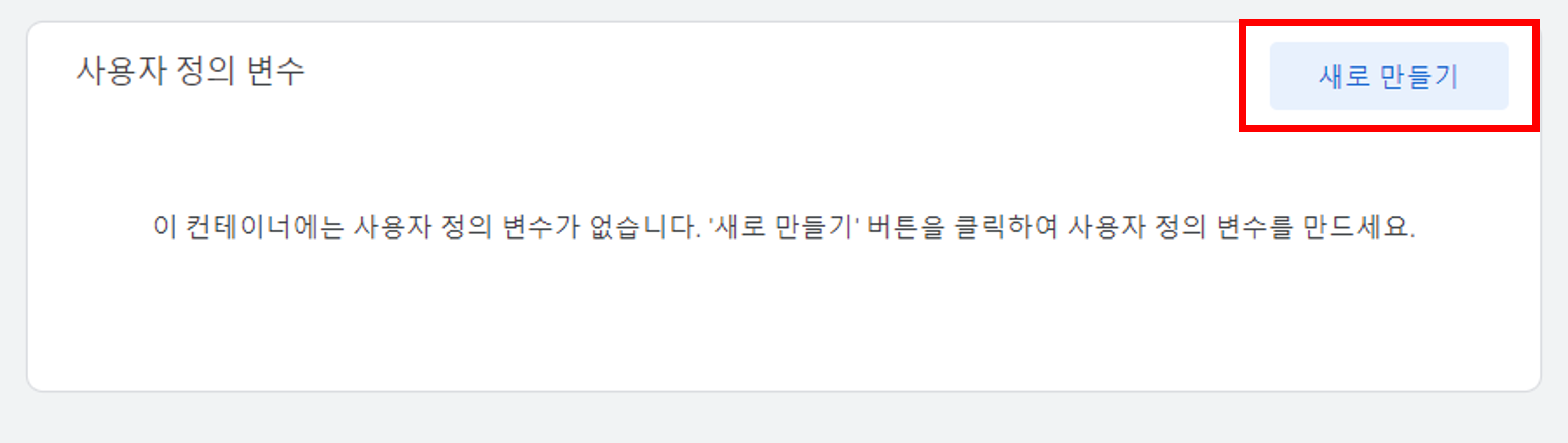 1. 변수(Variable)의 사용자 정의 변수에서 [새로 만들기] 버튼을 클릭합니다.