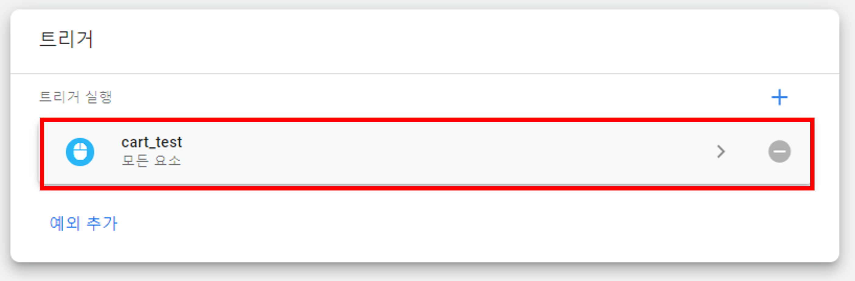 그리고 방금 만든 cart_test 트리거를 추가해줍니다.