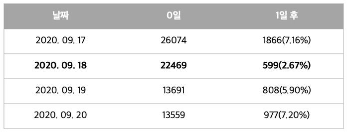 2일 뒤 : 태블릿 및 데스크 톱 = 406(1.56%) / 모바일 = 5,246(6.20%) 감소