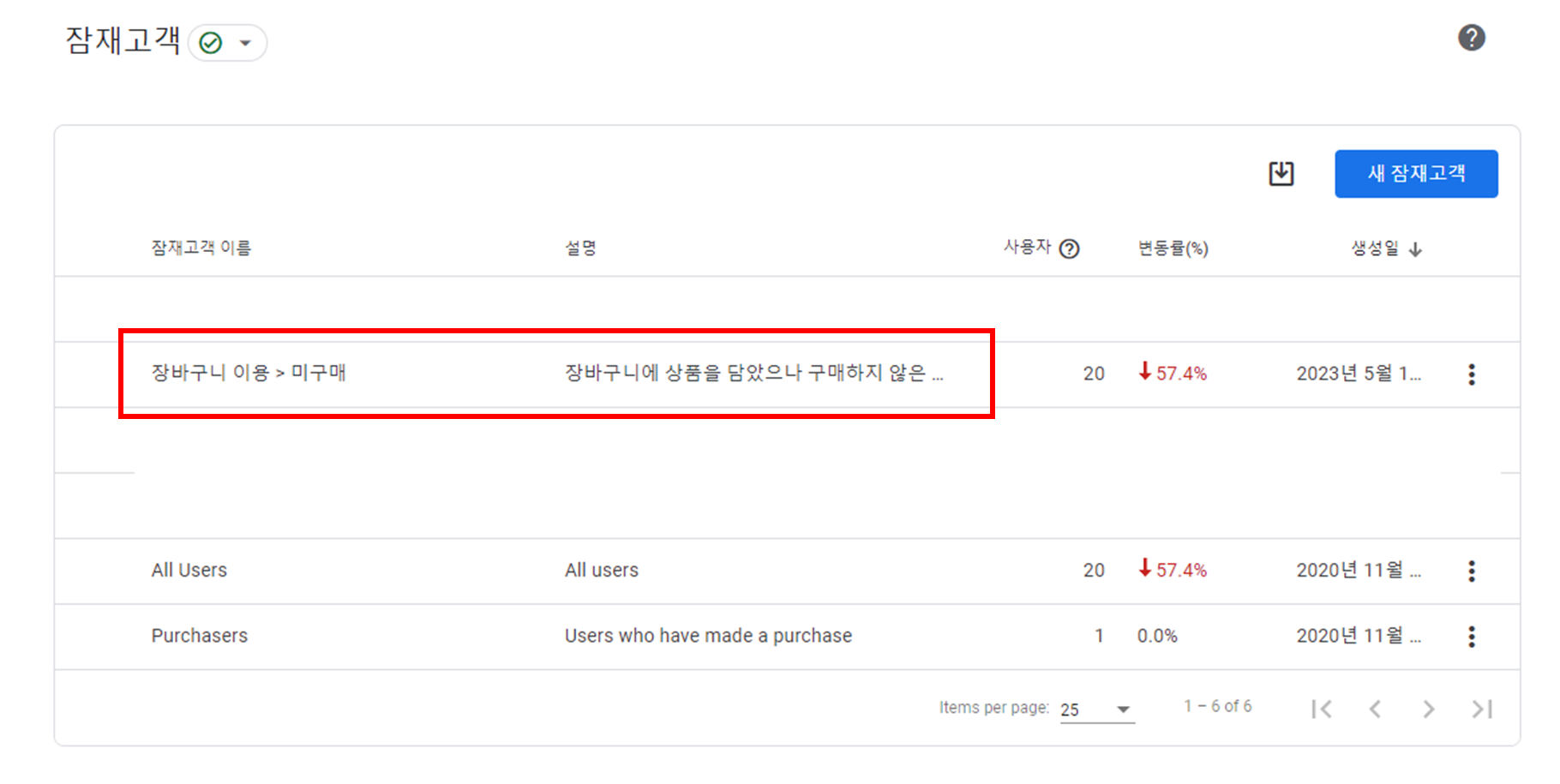 4. 잠재고객 생성 시점부터 충족되는 사용자를 잠재고객에 추가
