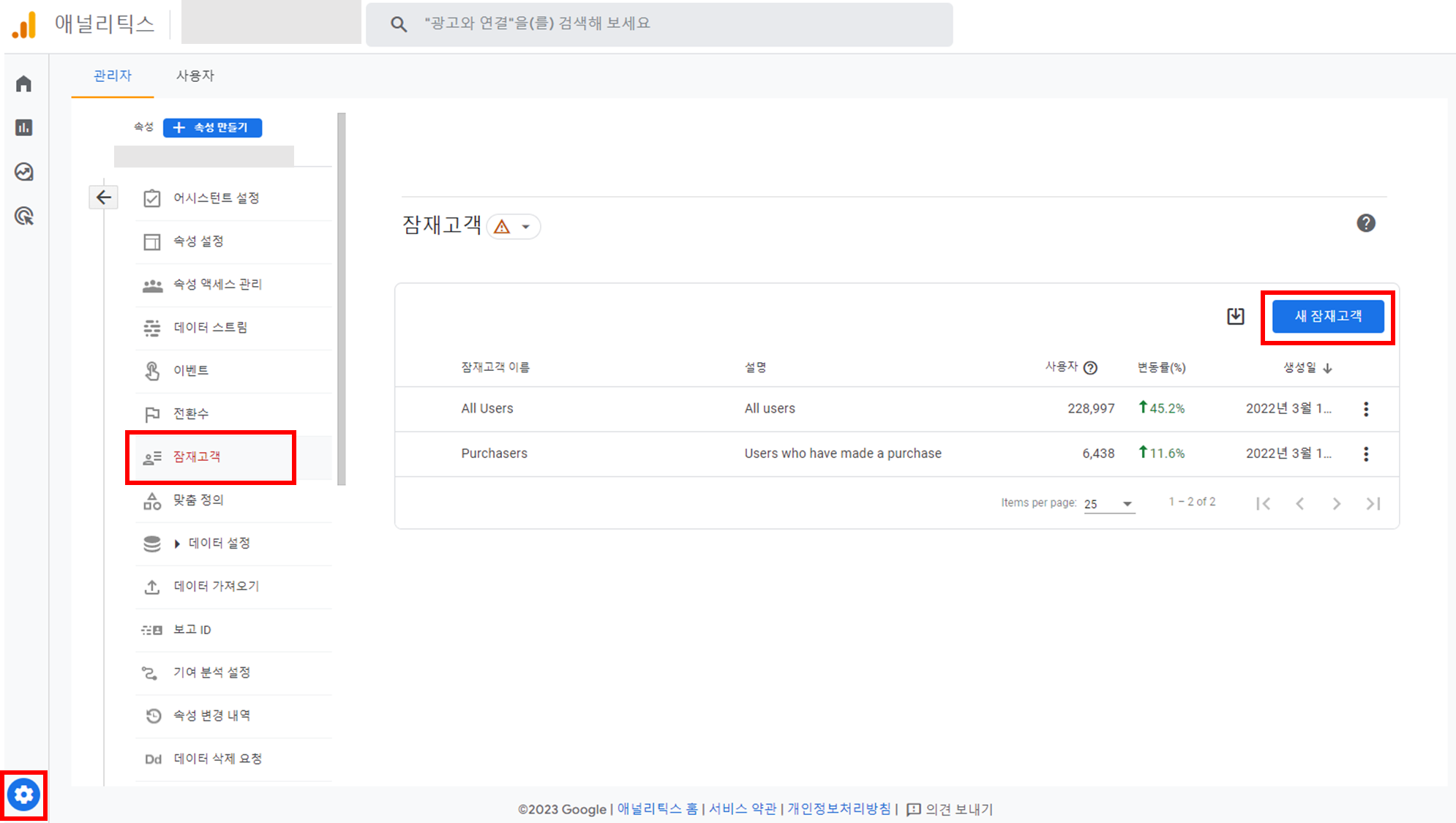 구글애널리틱스4(GA4)에서는 잠재 고객을 기본 설정으로 모든 사용자(All Users) & 구매자(Purchasers)로 구분하고 있습니다.
