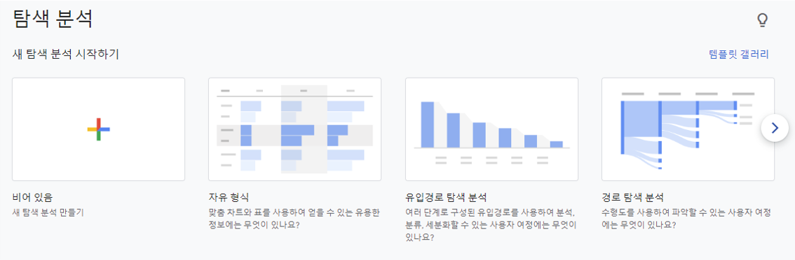 탐색 보고서는 7가지의 템플릿을 제공하고 있습니다.