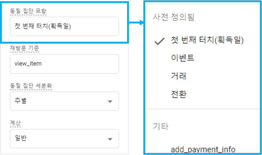 2) 이벤트 : 설정된 기간에 사용자의 첫 번째 이벤트가 발생