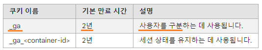 "_ga" 쿠키는 기본적으로 2년의 만료 시간이 정해져있습니다. 하지만 이는 지속적으로 해당 사이트에 재방문을 했을 경우 만료되는 시간입니다.
