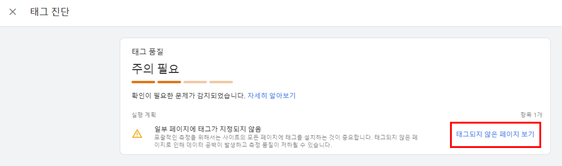 3. 확인필요 : Google 태그에 주의가 필요한 문제가 있으나, 심각한 문제는 아닌 상태